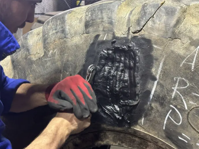 La zone blessée est préparée selon le type de pneu (radial/diagonal) et la nature du dommage. La préparation inclut débridage, nettoyage, mise en forme et élimination des parties altérées. Une base saine est indispensable pour garantir l’adhérence des matériaux et éviter les défauts à la remise en service.